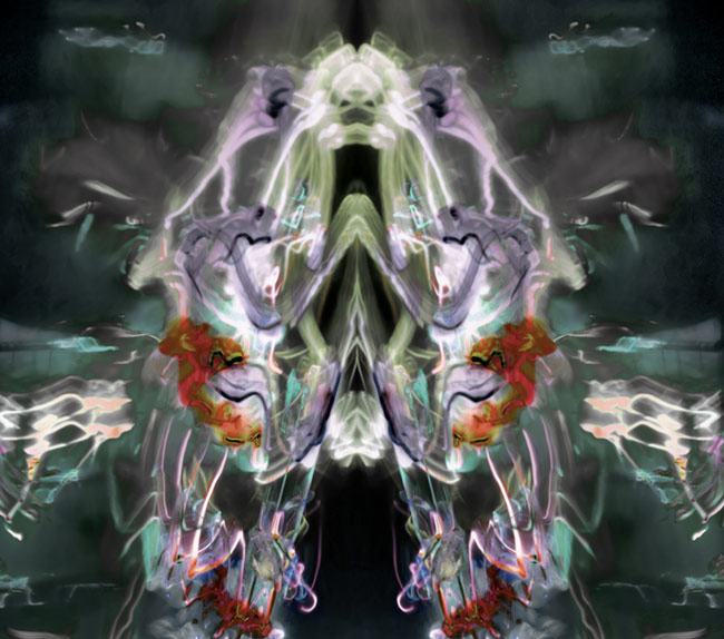 Hall of the Mountain King. Visually bold and sophisticated, the work features a color palette of black, white, burnt orange, and muted greens and lavender hues.
